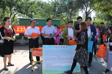 9月20日上午,鞍山市统计局在鞍山市烈士山公园广场举行第八届“中国统计开放日”活动。本次活动的主题是“统计新动能服务新常态”,由鞍山市统计局、国家统计局鞍山调查队主办。广场主题活动通过悬挂条幅展板、现场咨询、发放宣传册、发放纪念品等多个板块进行,内容形式多样。