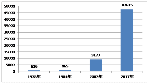 (1)改革开放政策的落地实施对工业经济产生巨大的促进作用,全市工业生产总量不断增加,经营规模不断壮大,经济效益大幅提升。2017年,全市规模以上工业企业户数240户,完成工业总产值433.5亿元,比1978年的15.0亿元增长27.9倍。