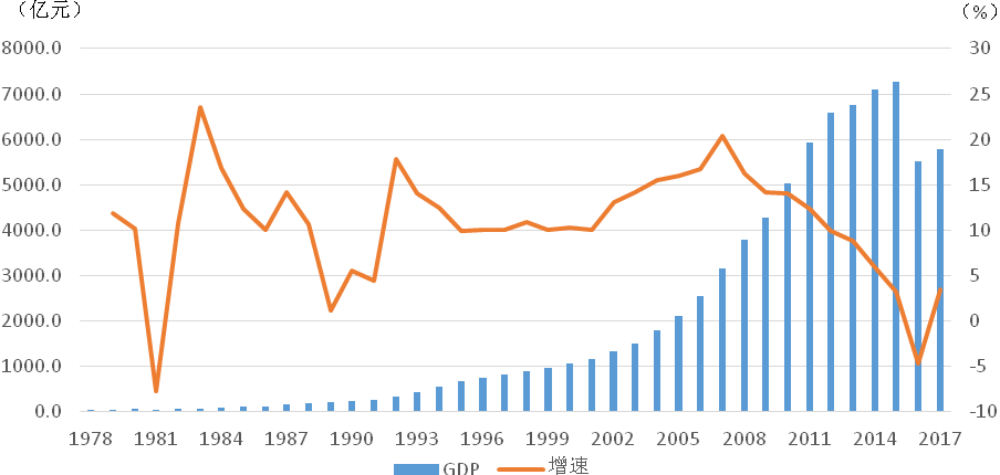 经济总量实现重大跨越。2017年,沈阳地区生产总值达到5784.7亿元,按可比价格计算,是1978年(43.6亿元)的50倍。改革开放40年,全市经济伴随着体制变革、机制转换以及结构调整,先后经历了转型期、快速增长期和调速换挡期。近年来,受国际金融危机及新旧动能转换等多种因素影响,全市经济进入新常态,由高速增长逐步转向高质量发展。