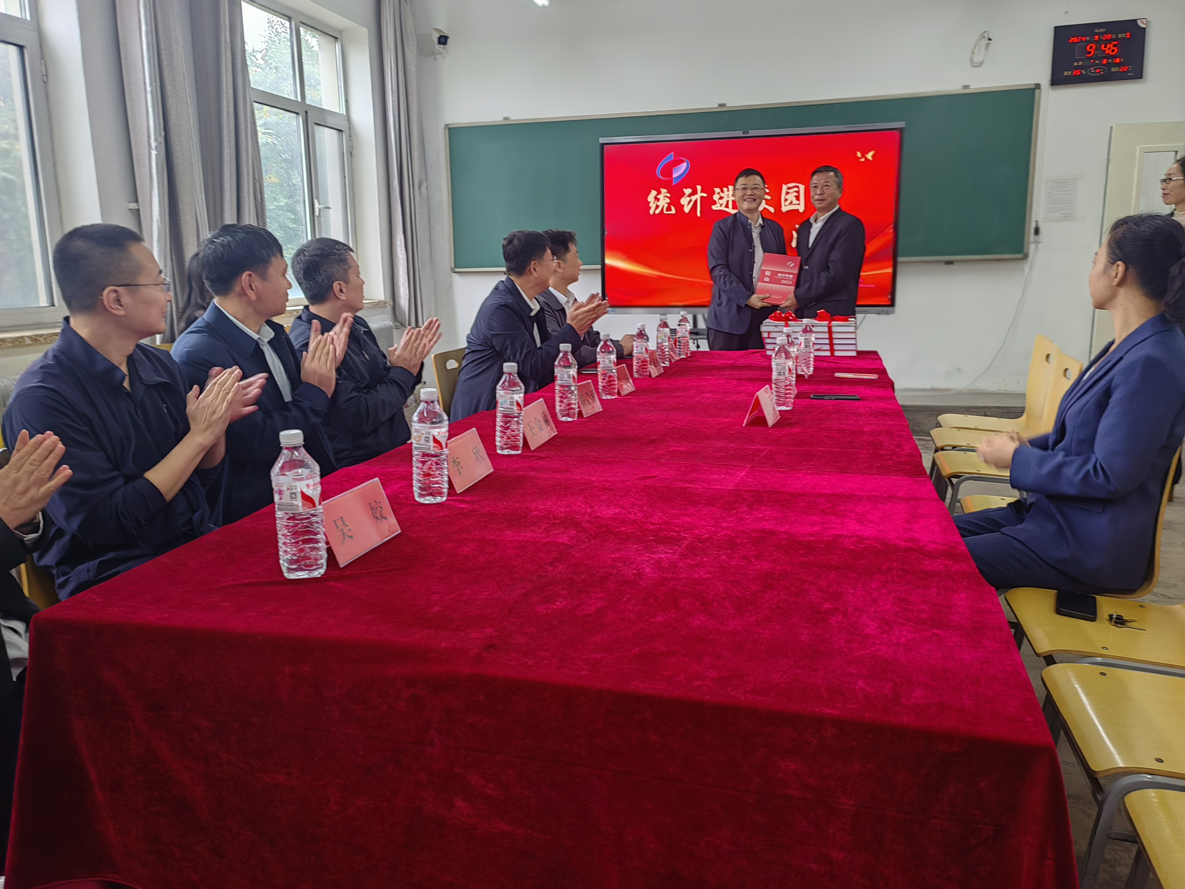 现场活动后,在数学学院举行了捐赠仪式,由鞍山市统计局向鞍山师范学院捐赠近五年的《统计年鉴》等统计资料,此次捐赠的系列统计年鉴,充实了学校年鉴类资料的馆藏储备,形成了内容完整、年代连续的统计资料链,为广大读者提供了大量的统计知识和热点信息。